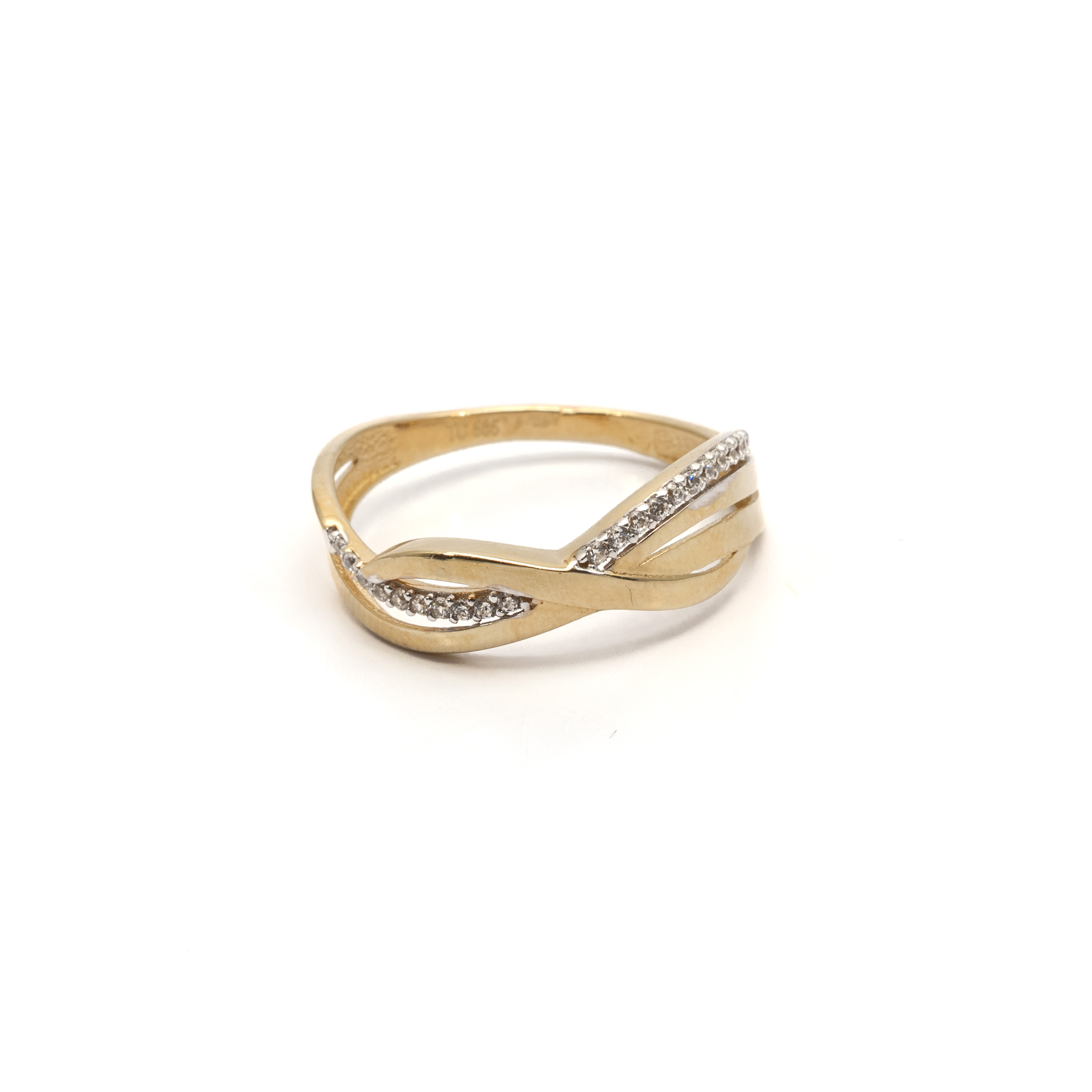 14 K női sárga gyűrű fonott cirkónia köves