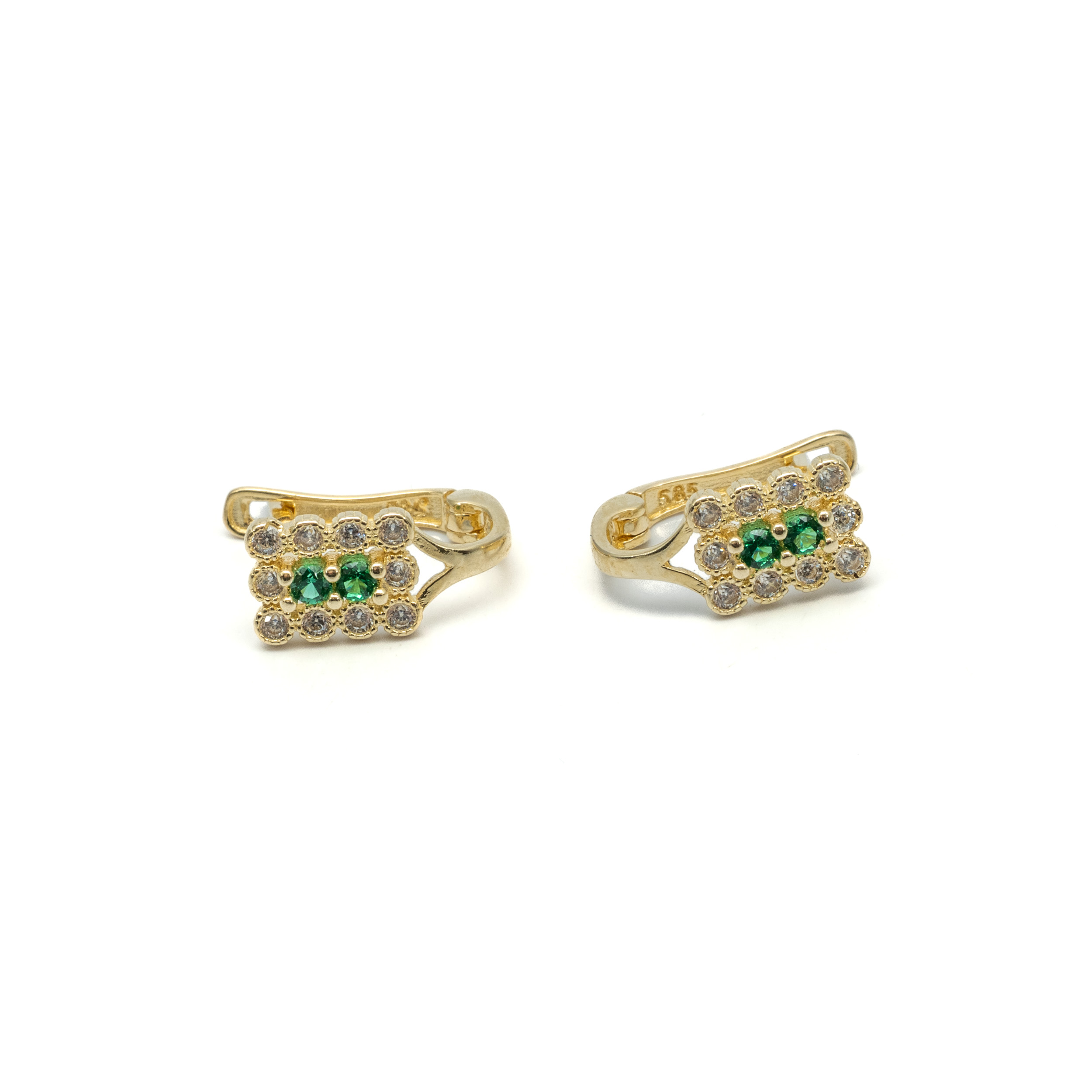 14K Gyerek arany francia kapcsos fülbevaló zöld cirkónia kövekkel