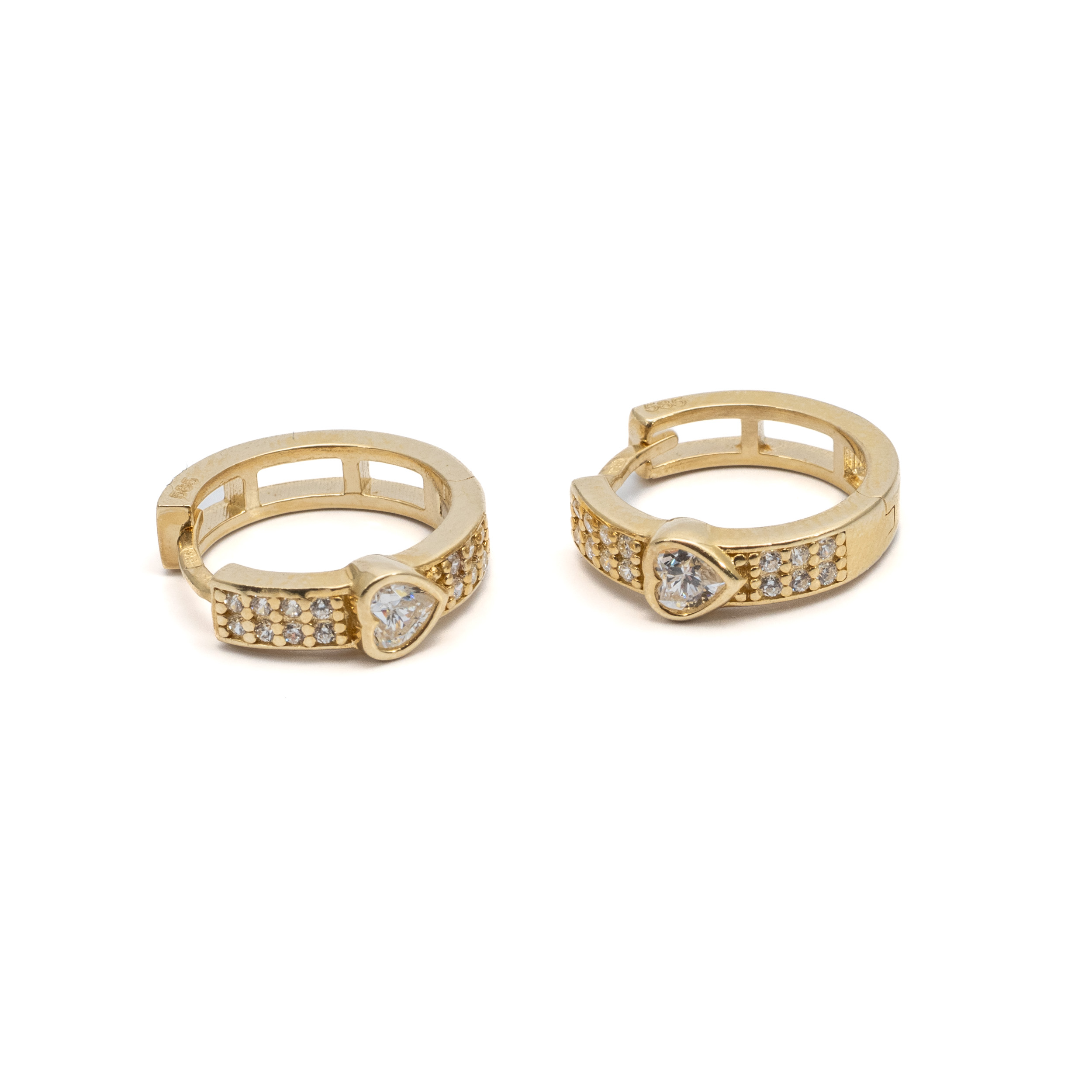 14K Női arany bepattintós fehér köves szivecske mintás karika fülbevaló