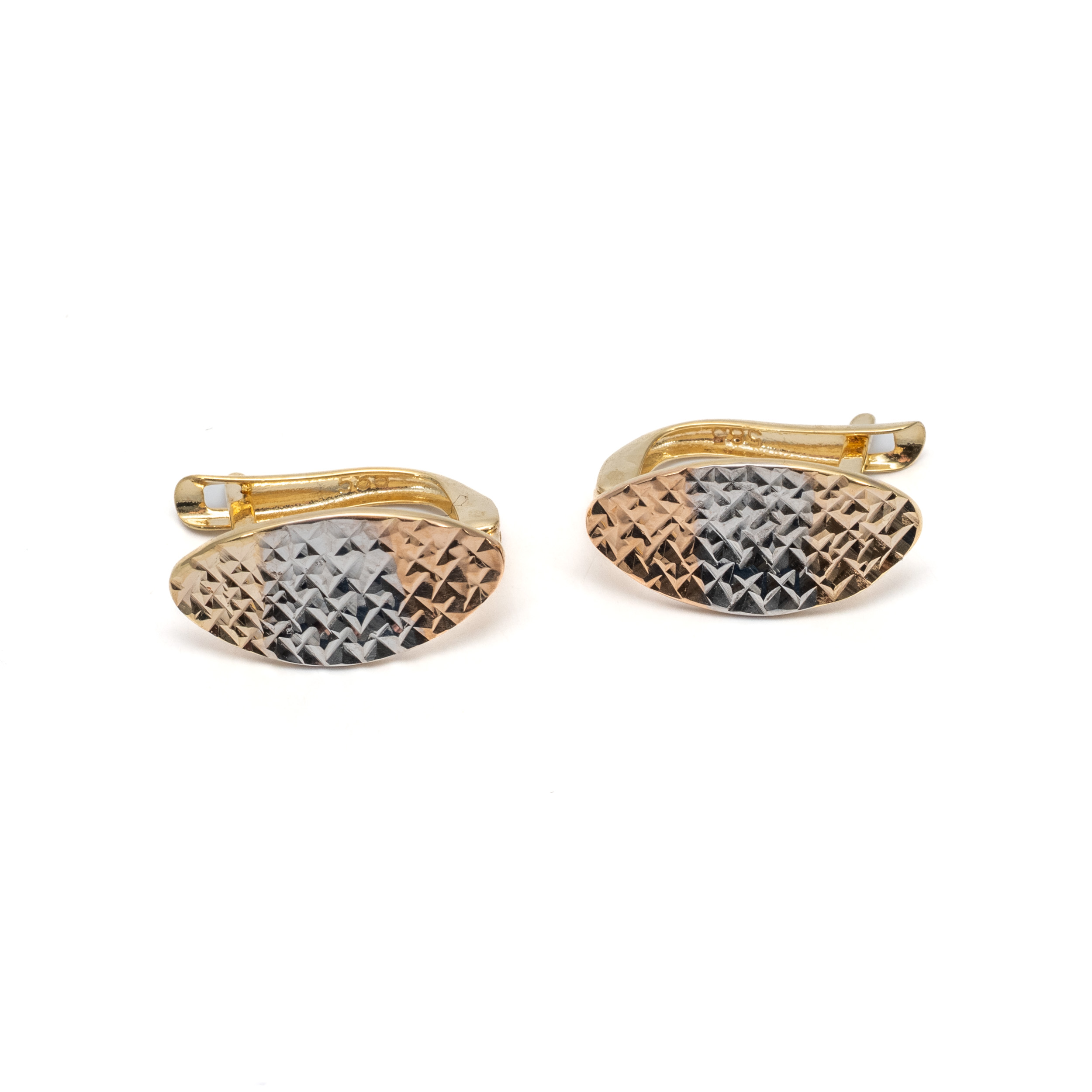 14K női arany bicolor vésett mintás francia kapcsos fülbevaló