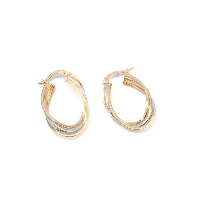 14K női arany bikolor ovális villás fülbevaló