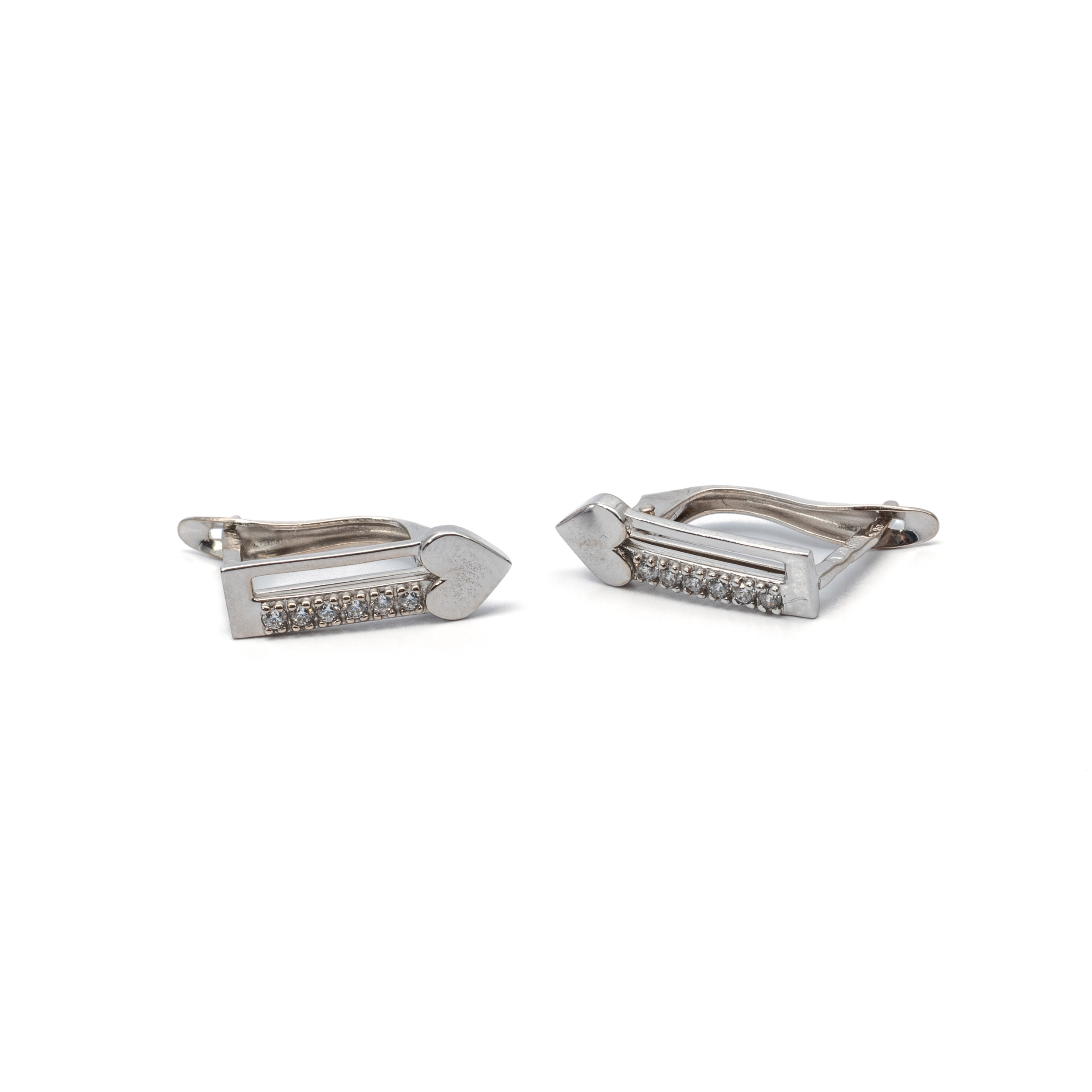 14K Női fehérarany francia kapcsos fülbevaló szív mintával cirkónia kövekkel