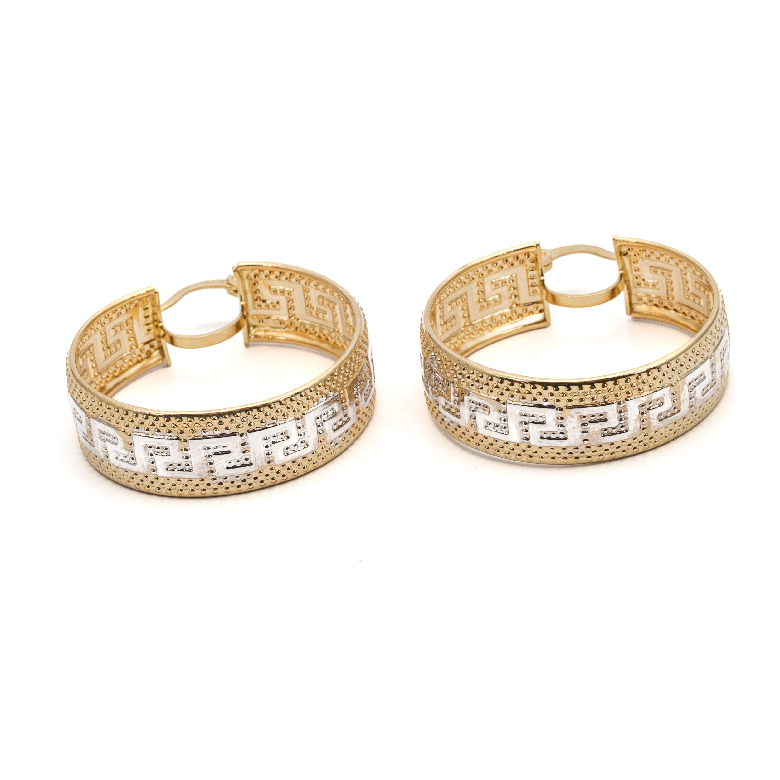 14K női arany görög mintás bicolor fülbevaló