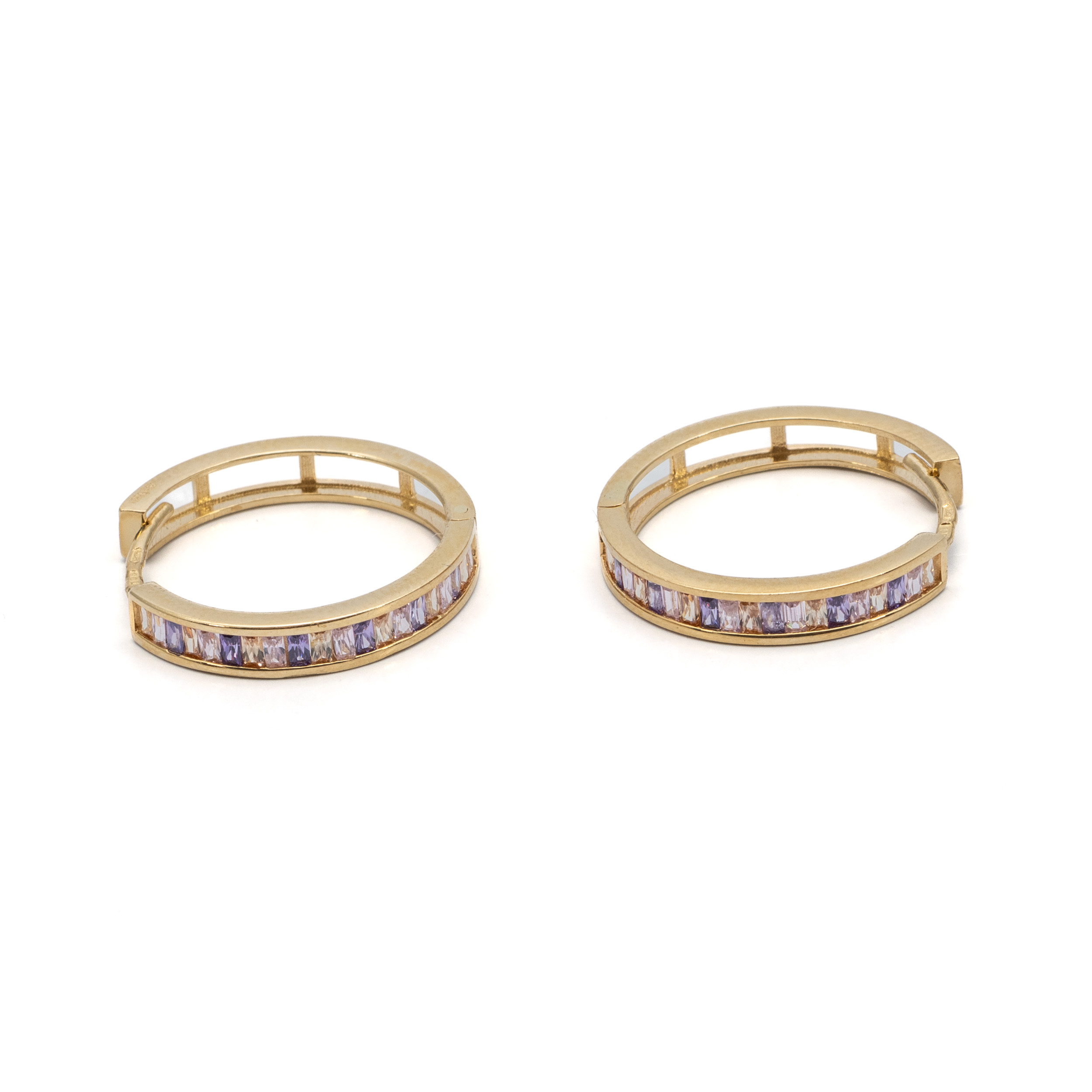 14K Női arany lila köves bepattintós karika fülbevaló