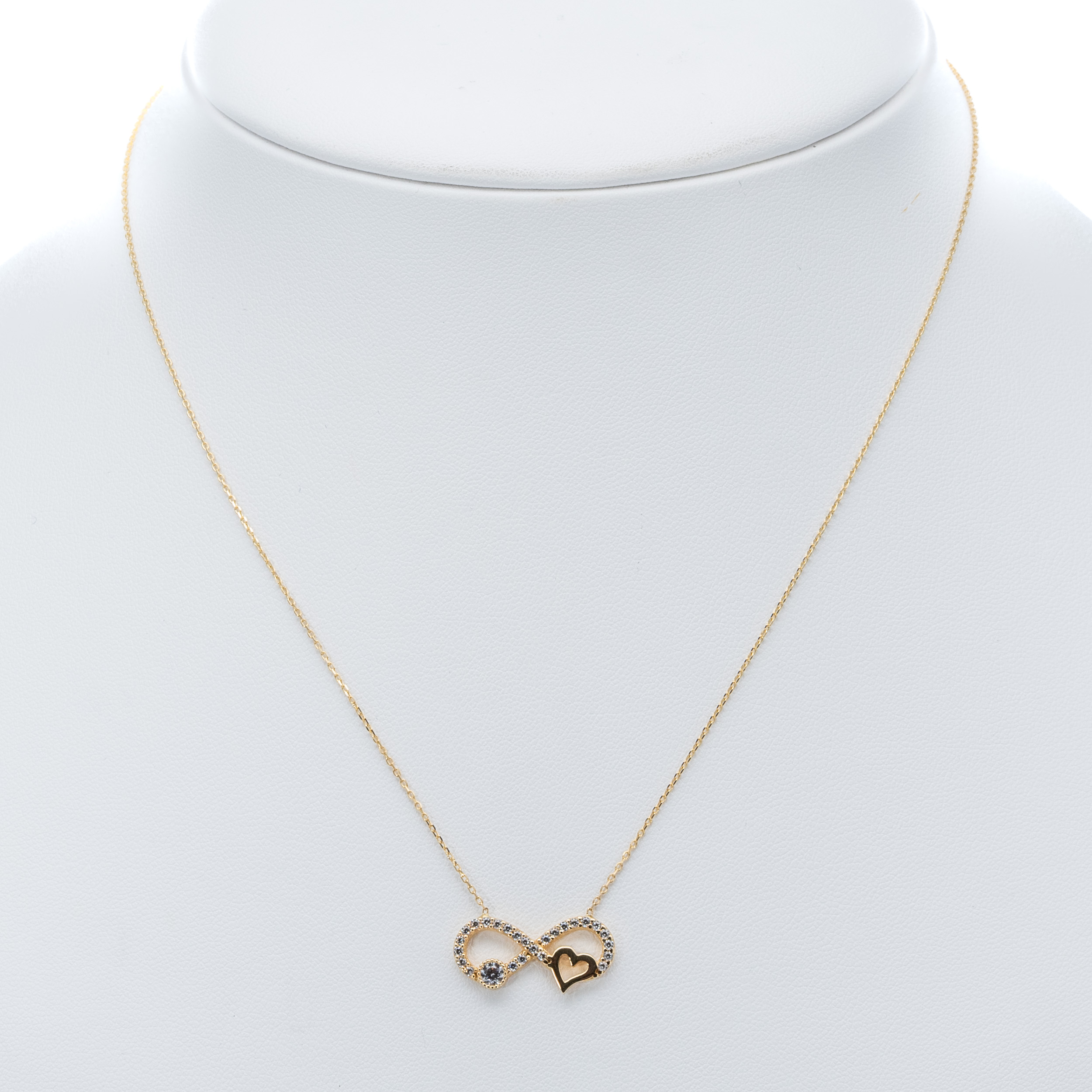 14K Női sárga arany nyaklánc végtelen jeles medállal kék cirkónia köves