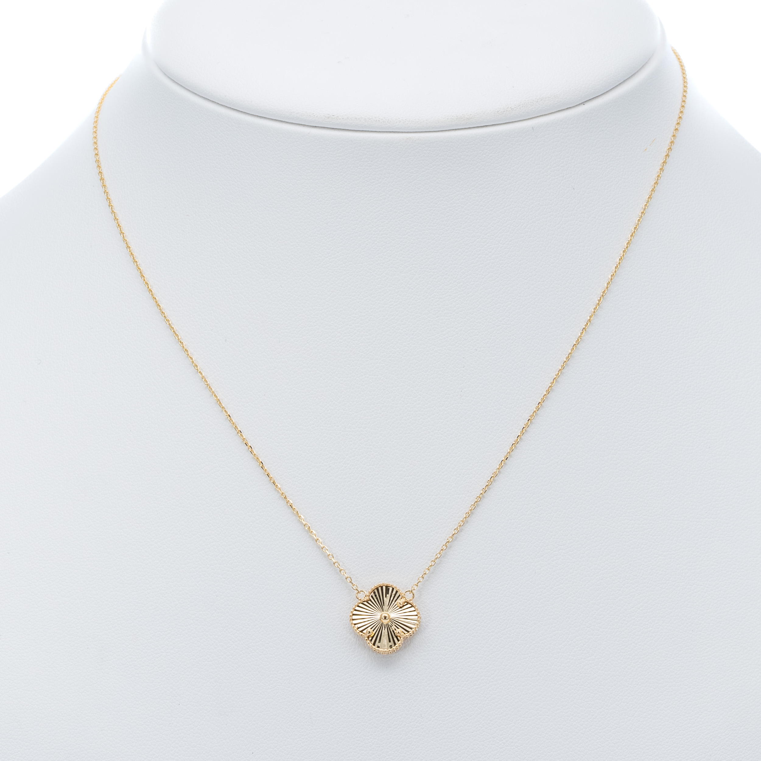 14K Nő sárgai arany nyaklánc vésett lóhere medállal