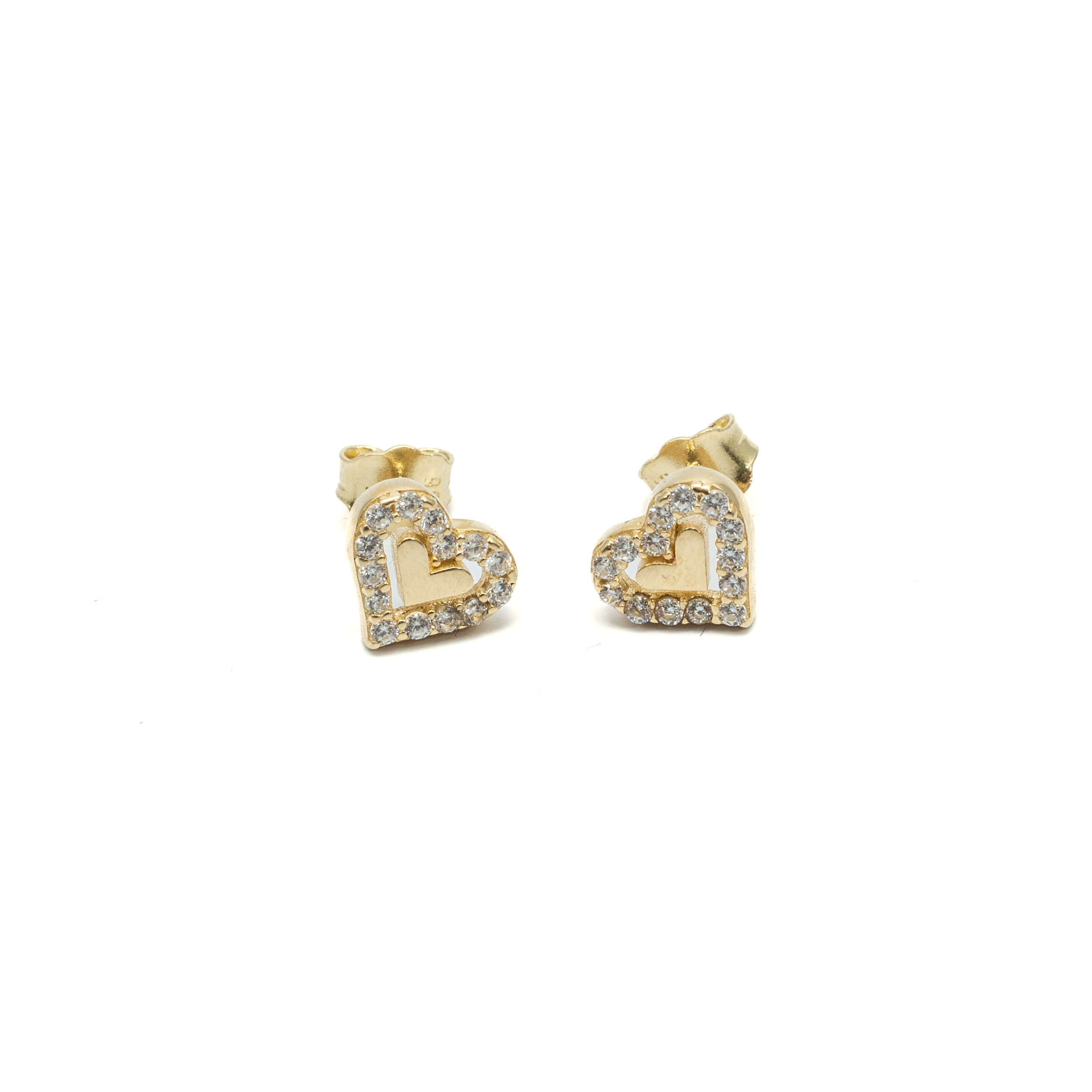 14K női arany stekkeres szív alakú fülbevaló cirkónia kővel