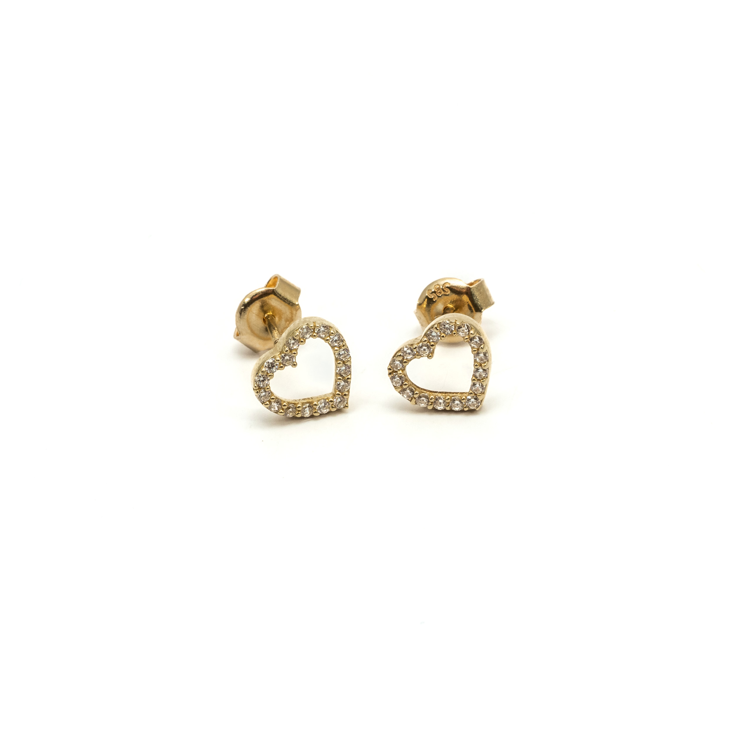 14K női arany stekkeres szív formájú fülbevaló cirkónia kövekkel