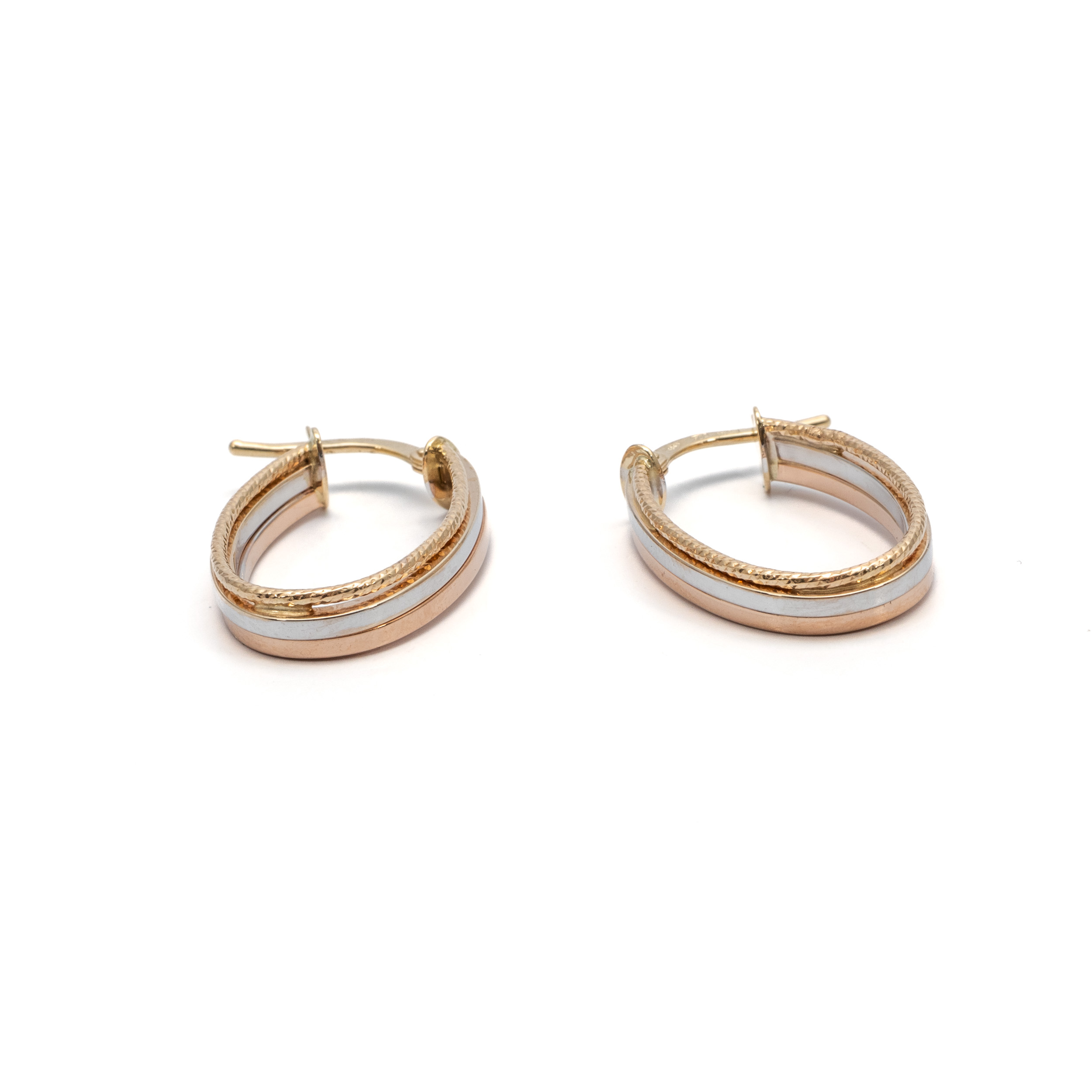 14K női arany tricolor egymásba fonódó karika fülbevaló