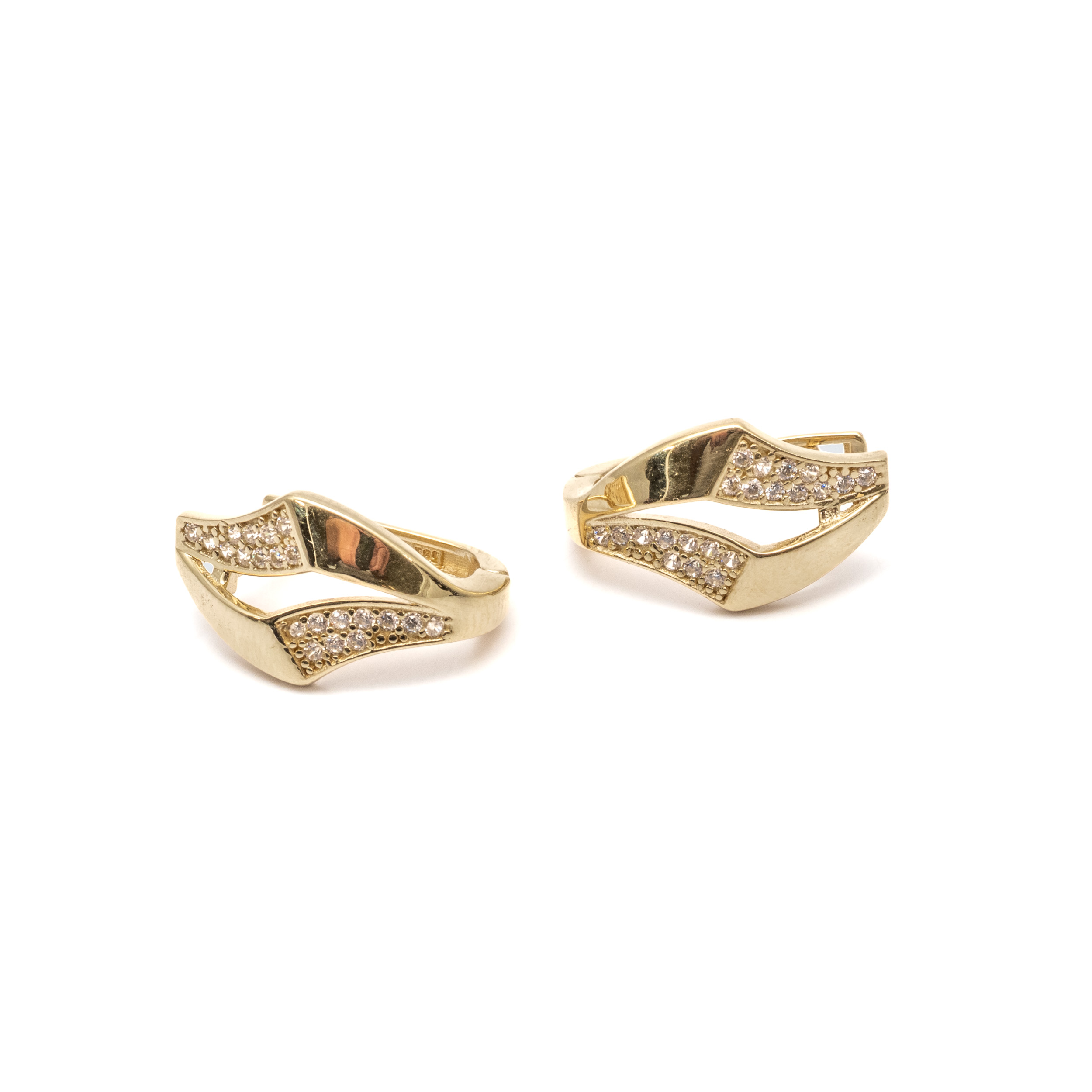 14K női sárga arany franciakapcsos fülbevaló cirkónia kövekkel