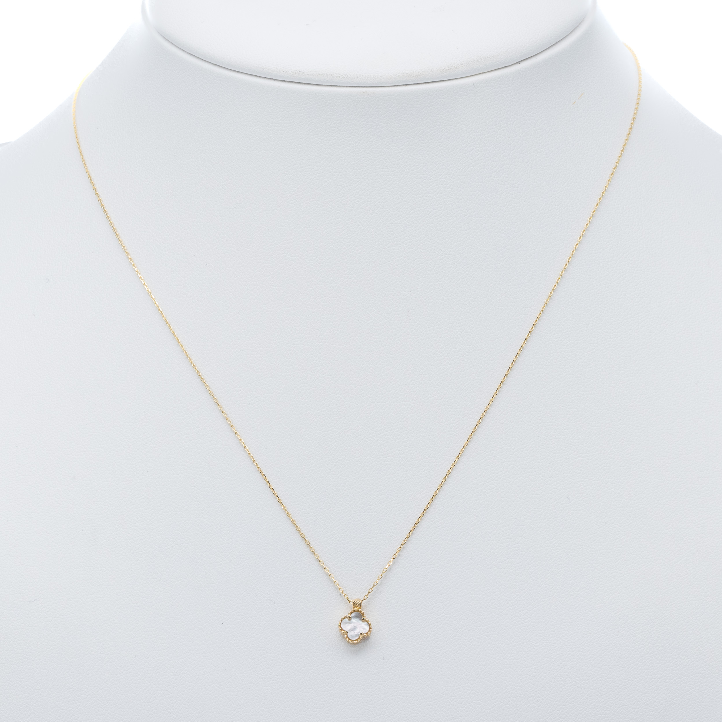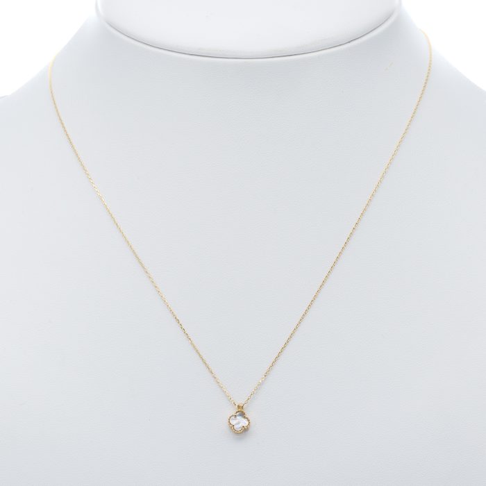 14K Női sárga arany nyaklánc gyöngyházas.lóhere medállal