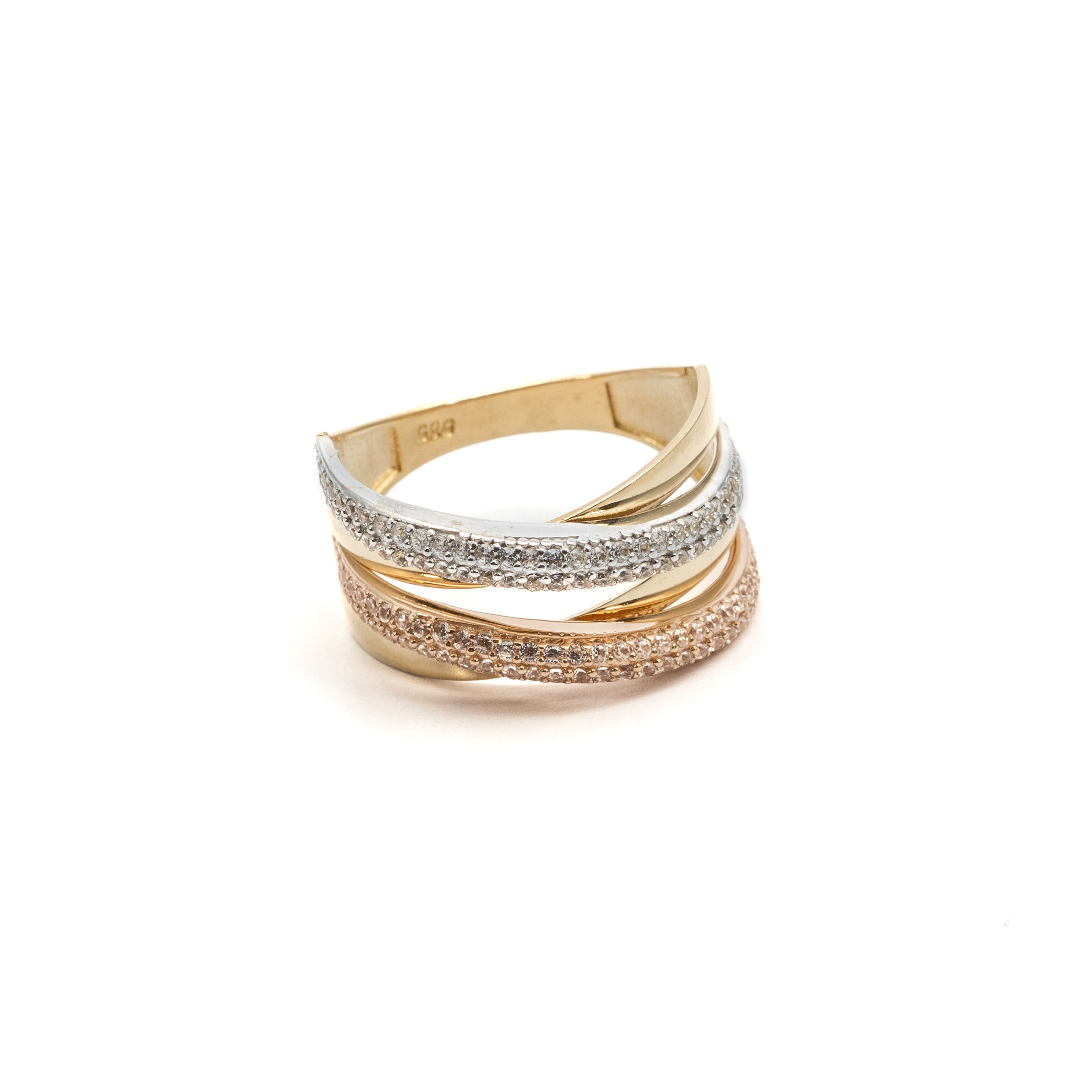 14K női tricolor arany gyűrű cirkónia kövekkel