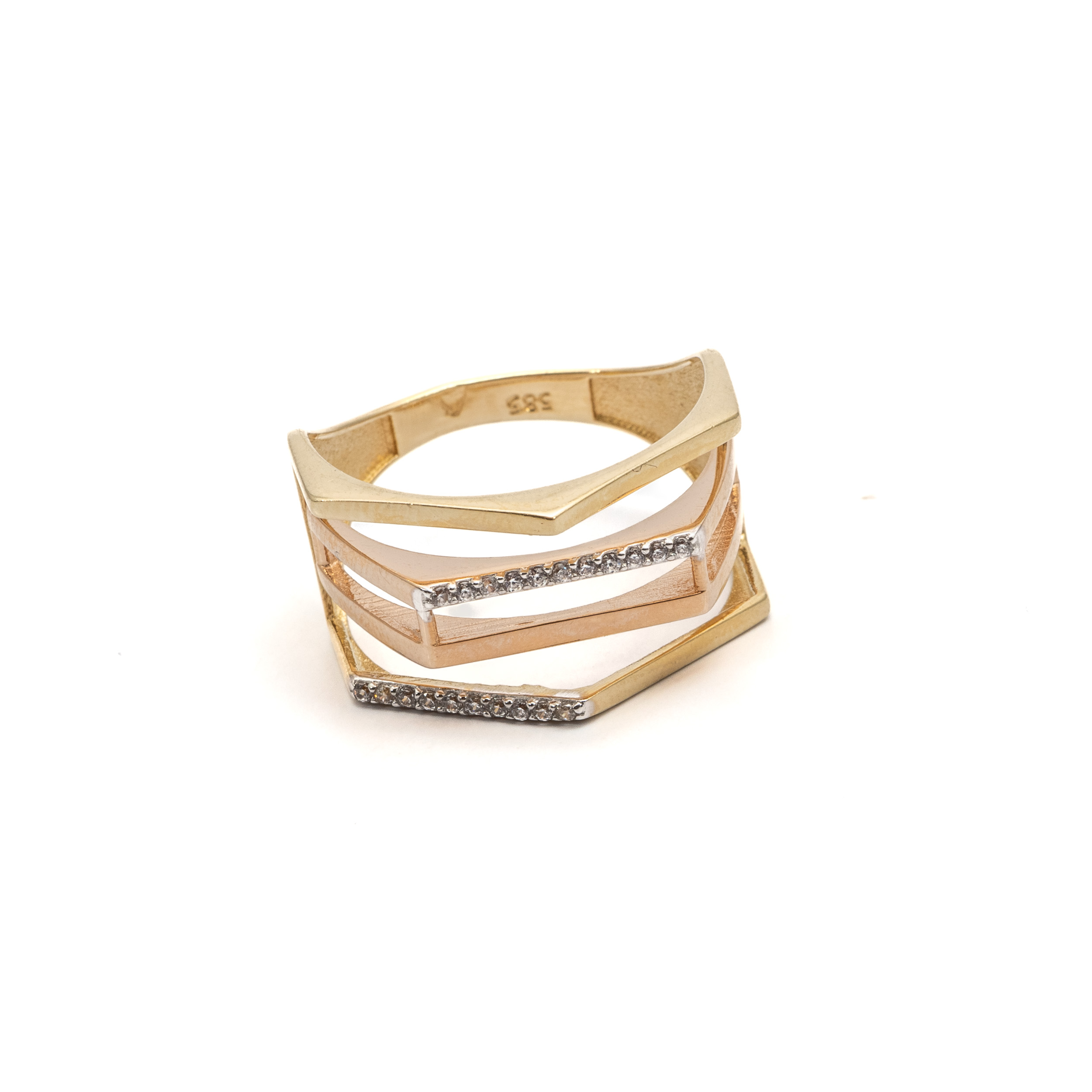14K női tricolor arany gyűrű cirkónia kövekkel