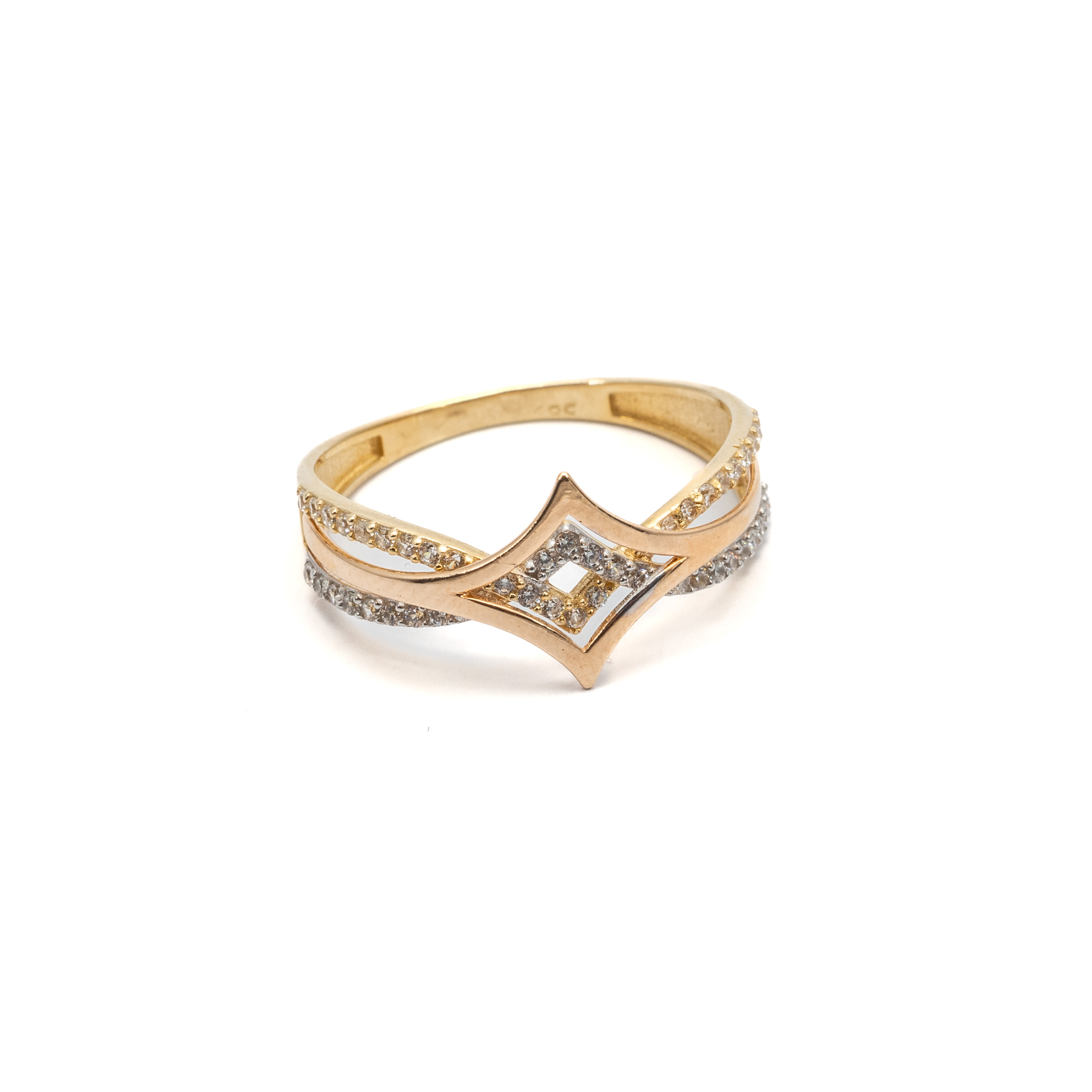 14K női tricolor arany gyűrű cirkónia kövekkel