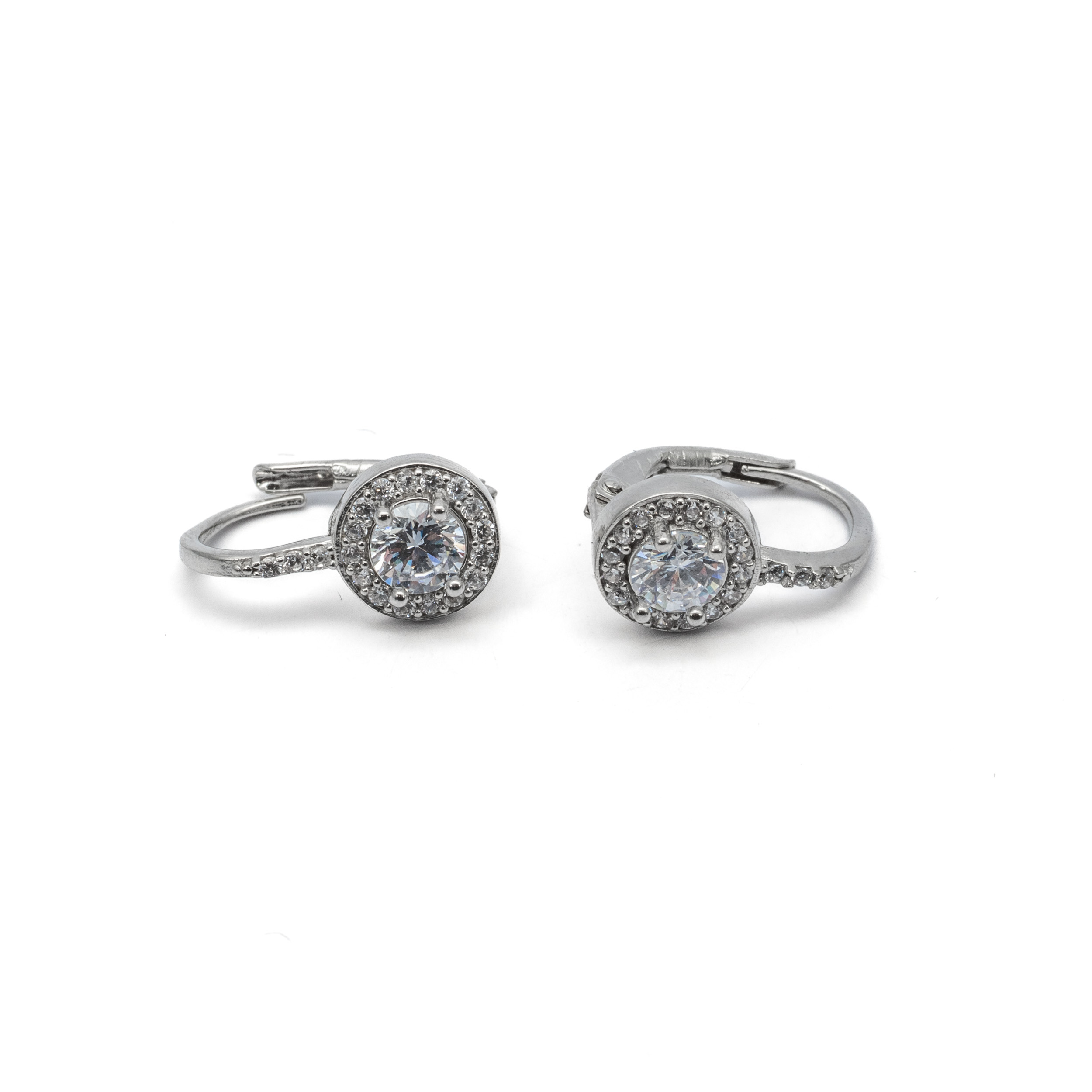 925 Női ezüst fehér köves patent záras kerek fülbevaló