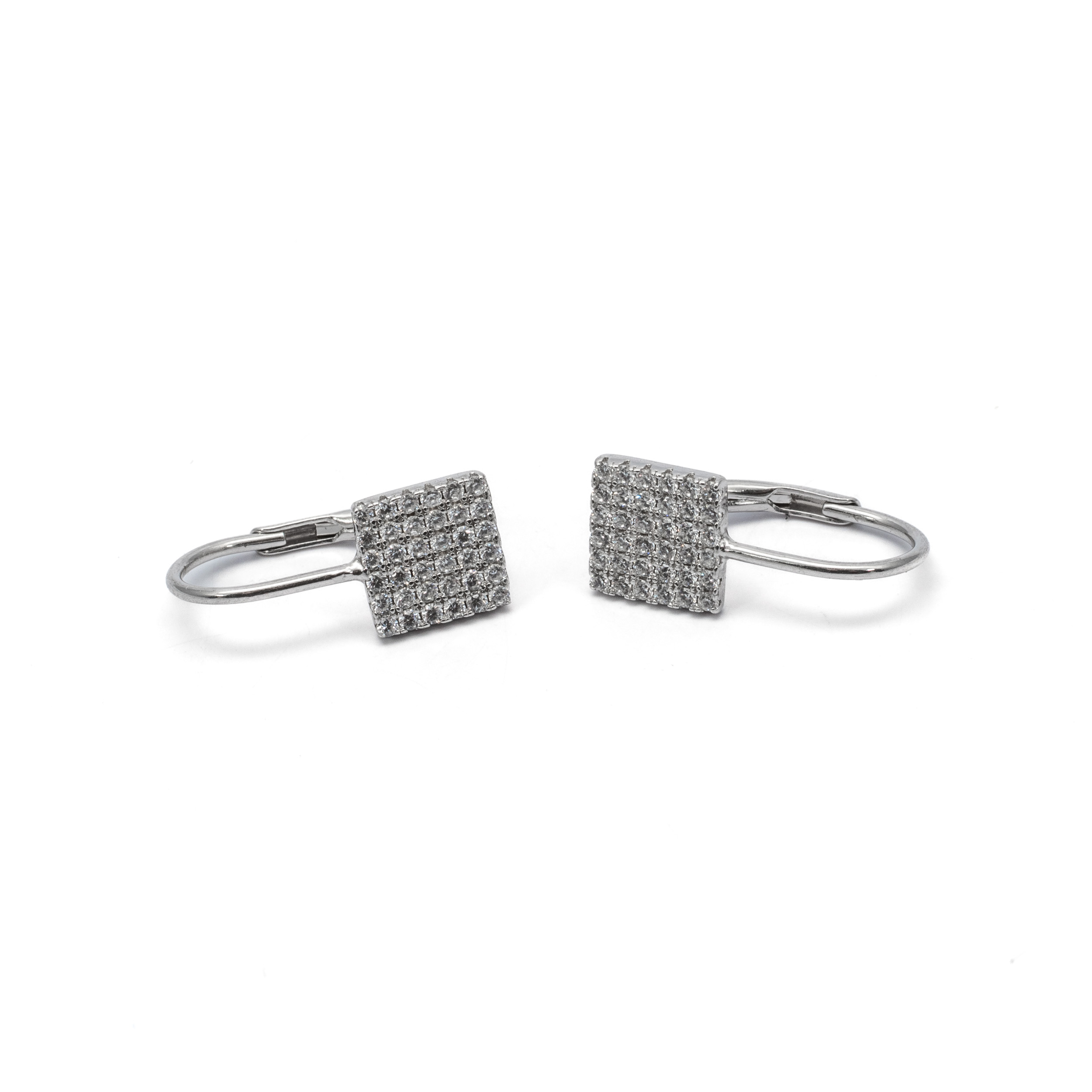 925 Női ezüst fehér köves patent záras kocka formájú fülbevaló
