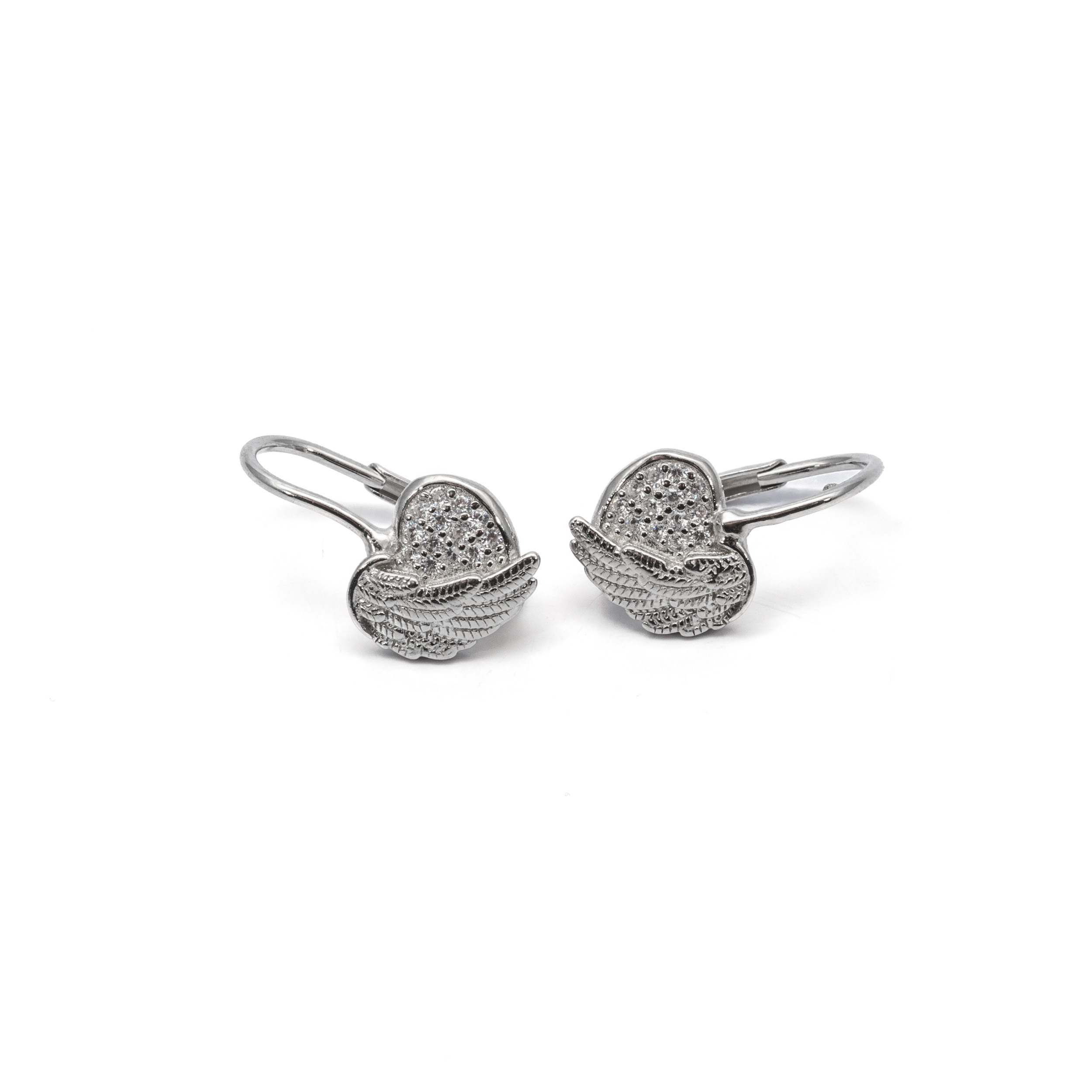 925 Női ezüst fehér köves patent záras sziv és angyalszárny alakú fülbevaló
