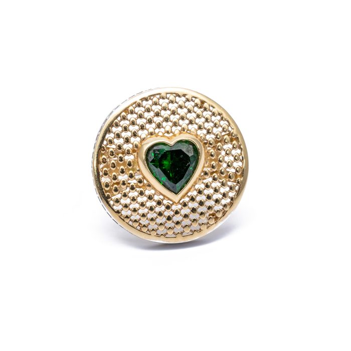 14K Női arany szív mintás zöld cirkónia köves gyűrű