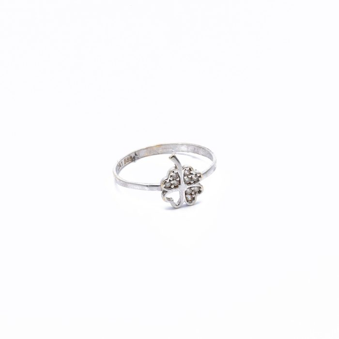 14K Női fehérarany lóhere mintás gyűrű cirkónia kövekkel