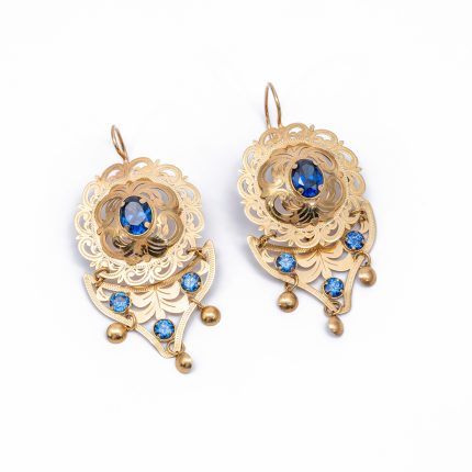 14K Női arany fantázia kék cirkónia köves beakasztós fülbevaló